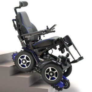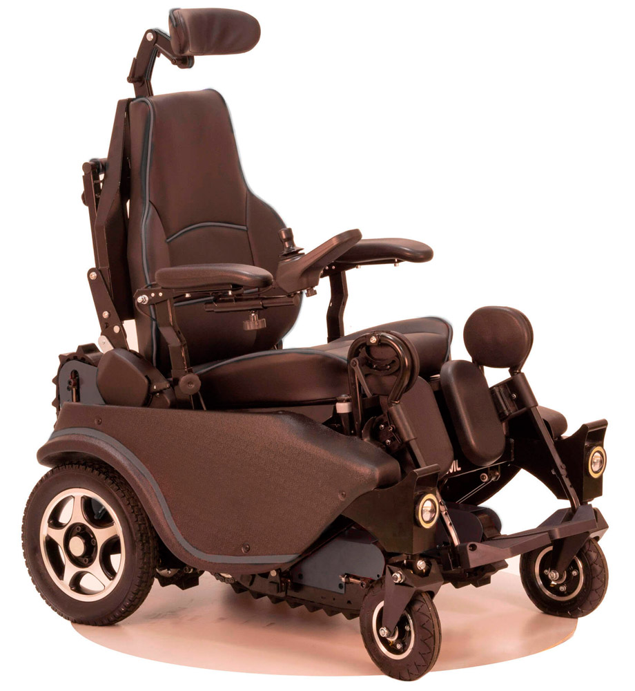 Коляска оснащена встроенными гироскопами, которые в автоматическом режиме переводят и удерживают владельца в горизонтальном положении с учетом угла подъема. Специальная гусеничная система обеспечивает надежное сцепление гусениц даже с деформированными лестницами и не допускает случайного скатывания устройства.